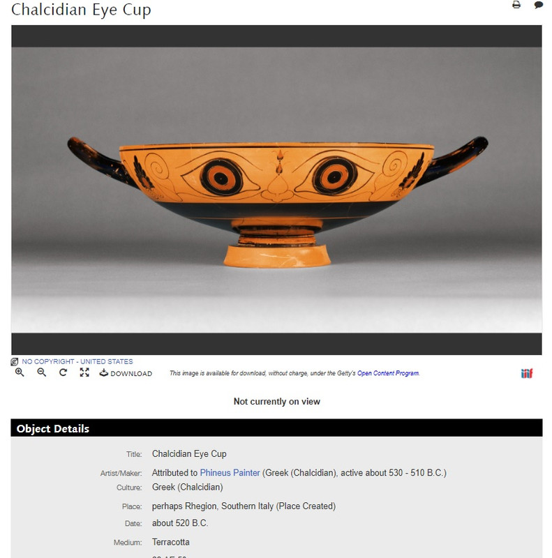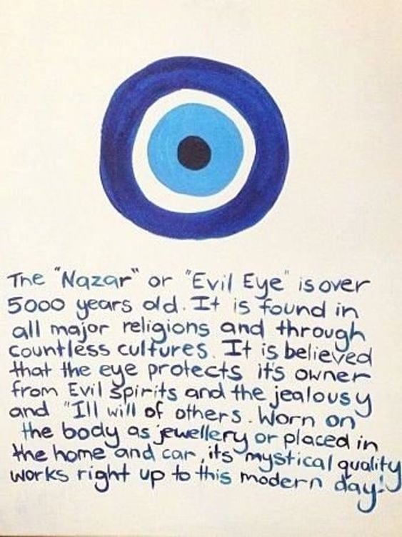 The evil eye is a superstitious belief in curse, believed to be cast by a malevolent glare, usually given to a person when one is unaware. It dates back at least to Greek classical antiquity, 6th century BC where it appeared on Chalcidian drinking vessels, known as 'eye-cups', as a type of apotropaic magic.