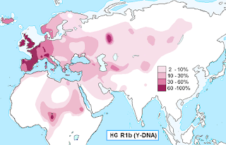 The red descendants of the Proto-Saharans appear mainly to be in Haplogroup R1b, the point of origin of which was the wetlands extending from the Nile to Lake Chad. Lake Chad was Noah's homeland. It is shown above in the dark red area in Central Africa.